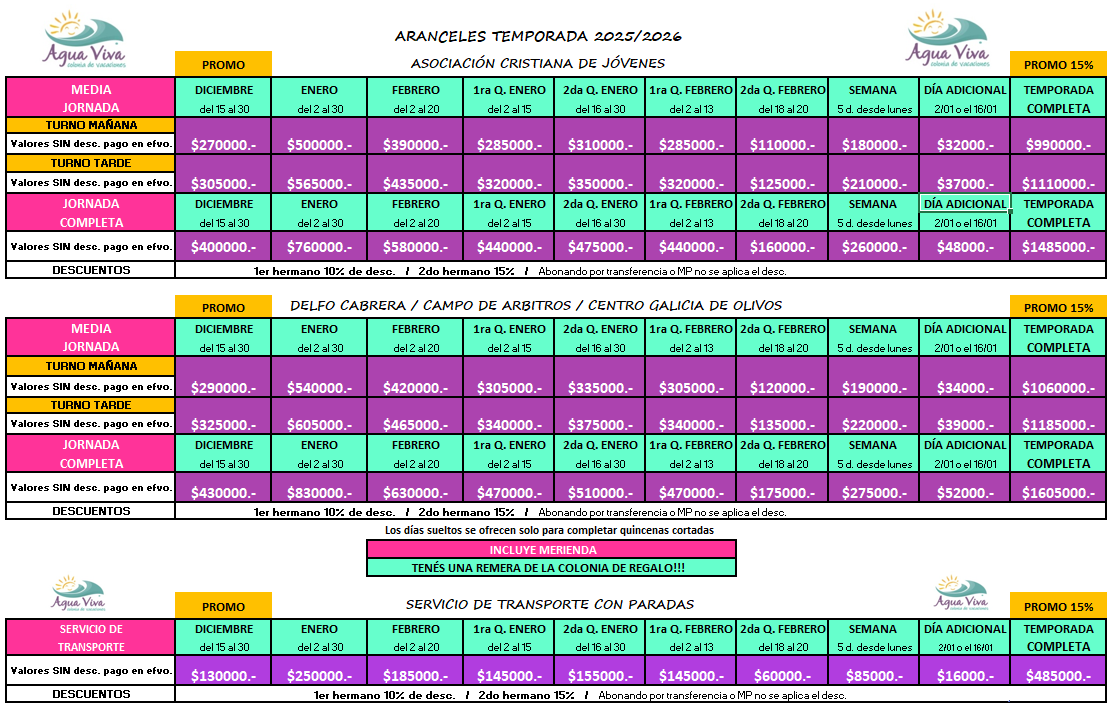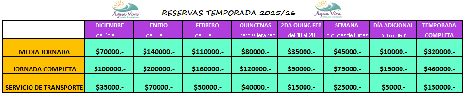 - o por mail a vacacionesaguaviva@gmail.com, para consultar si continuamos con cupos disponibles